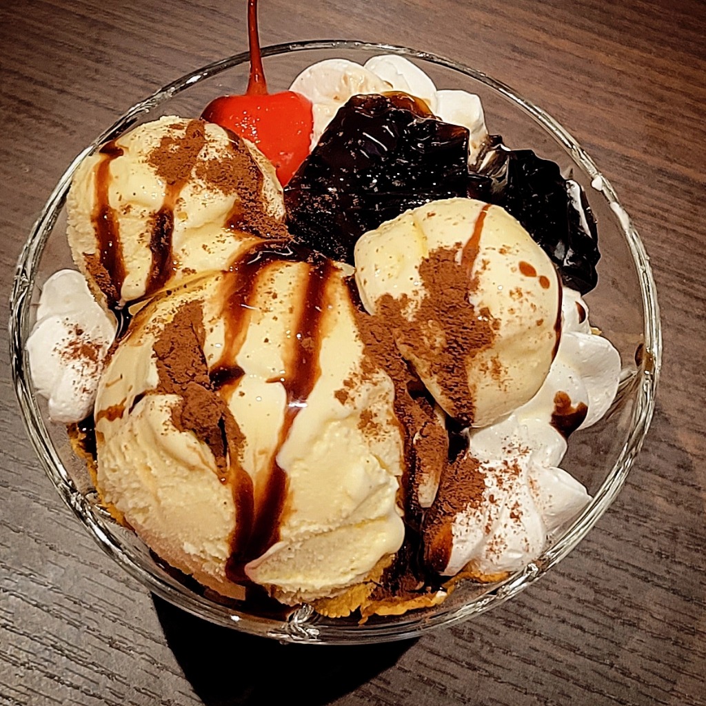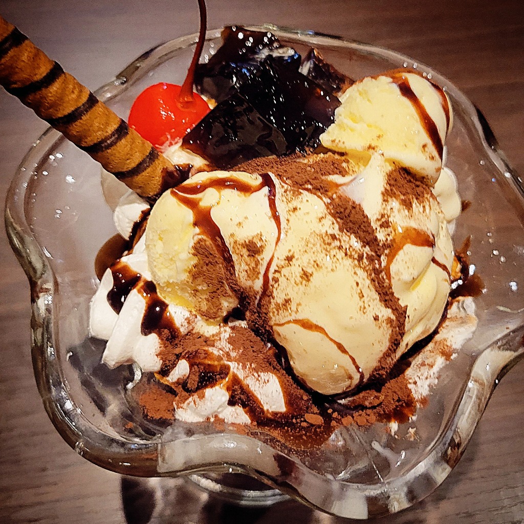 ほろ苦コーヒーゼリー・×白玉×バニラアイスのパフェ♥