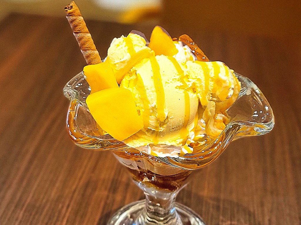 フローズンマンゴーと白玉をしのばせたサッパリ風味の贅沢パフェ♥