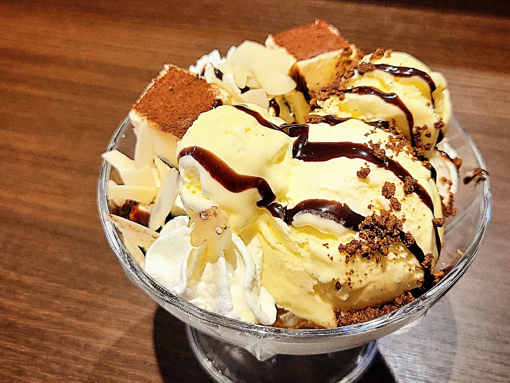 中にもトッピングにもカットティラミスをたっぷり使ったほろ苦風味の贅沢パフェ♥