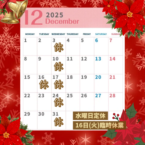 【12月】臨時休業ならびに年末年始の営業についてのお知らせ