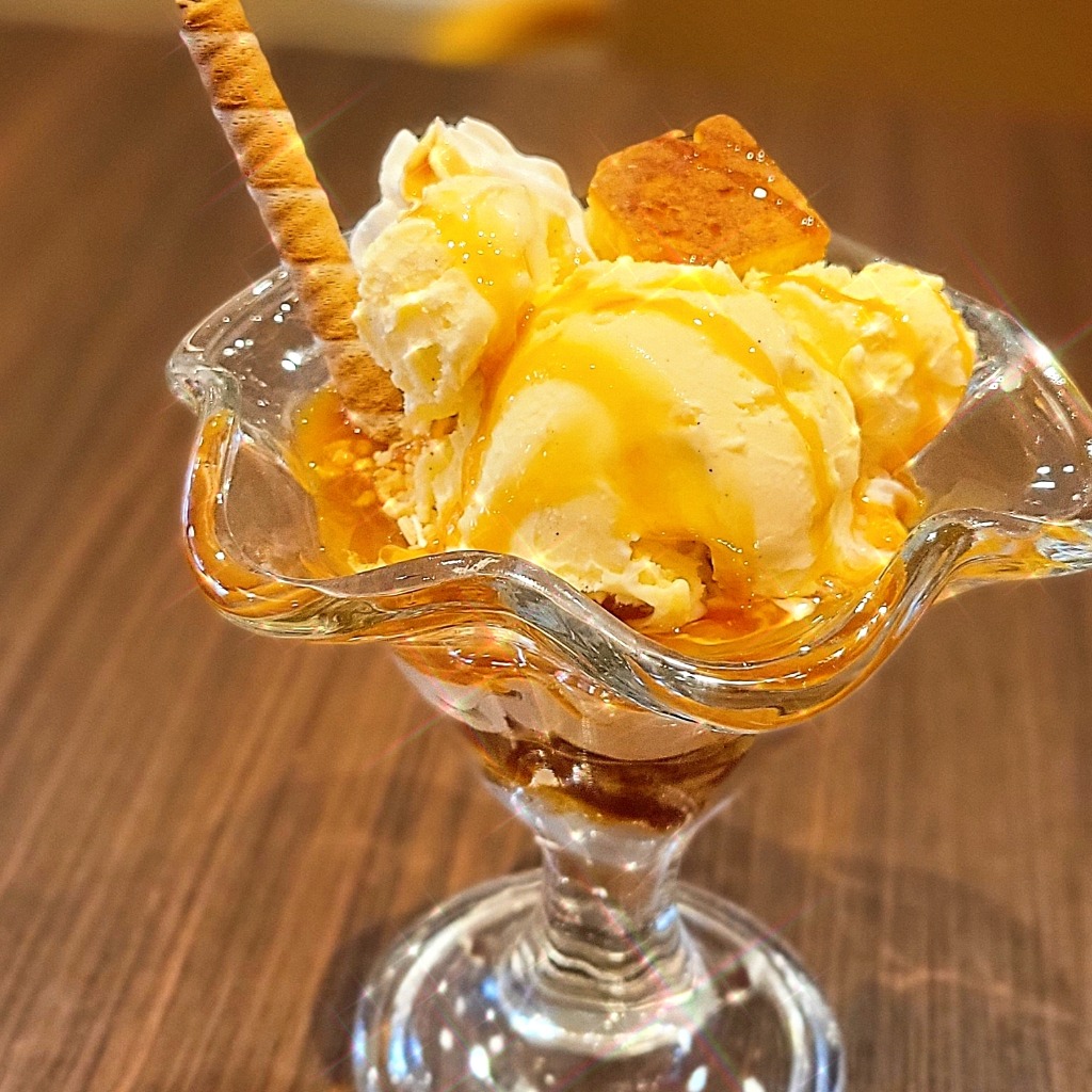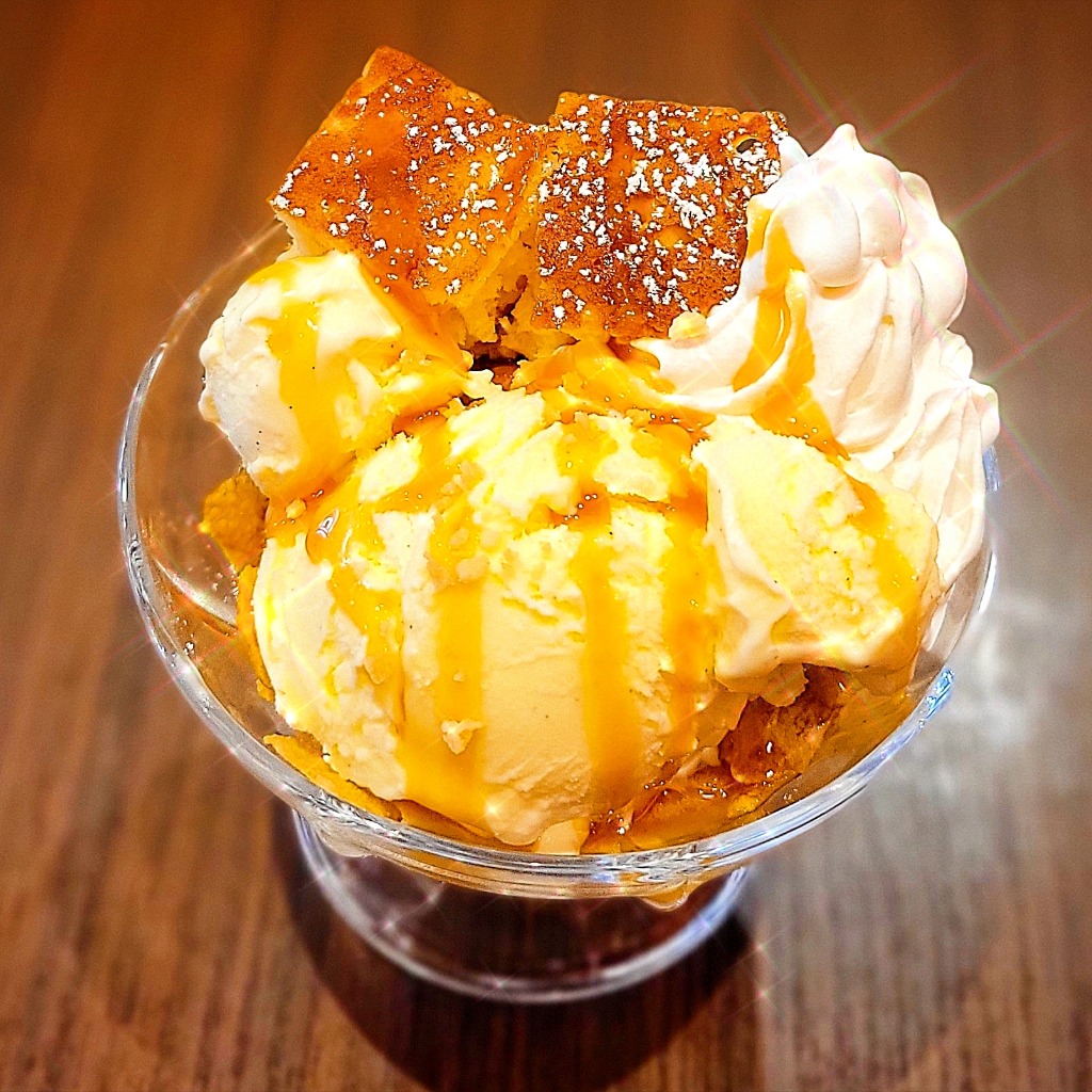 カットスポンジケーキ×キャラメルクランチ×濃厚バニラアイスのあまあまパフェ♥