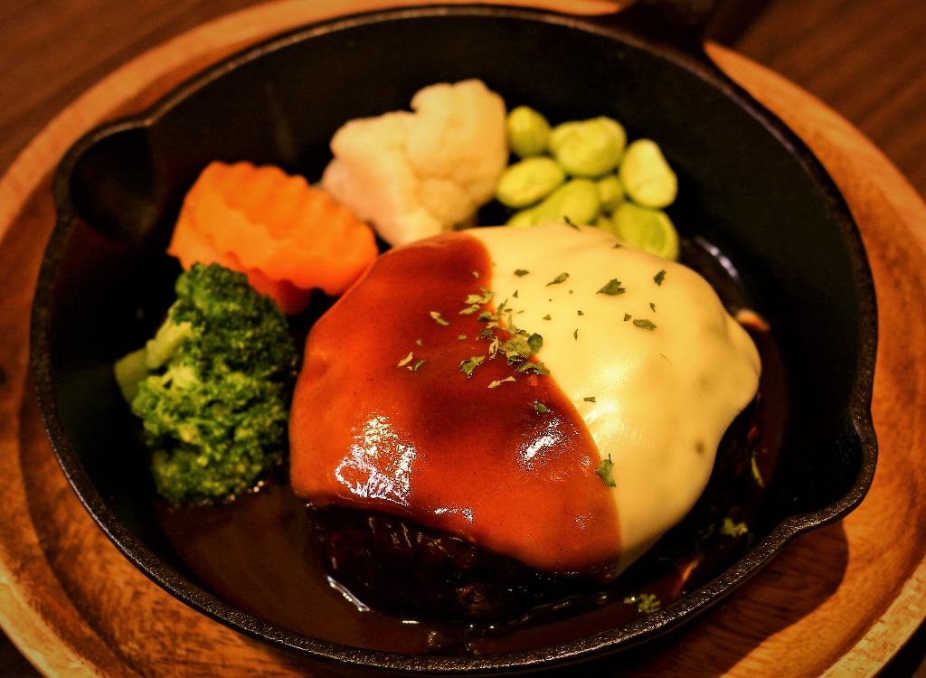 濃厚デミグラスハンバーグに、とろけるチーズをトッピング♥コクと旨みがパワーアップします(*^^)v