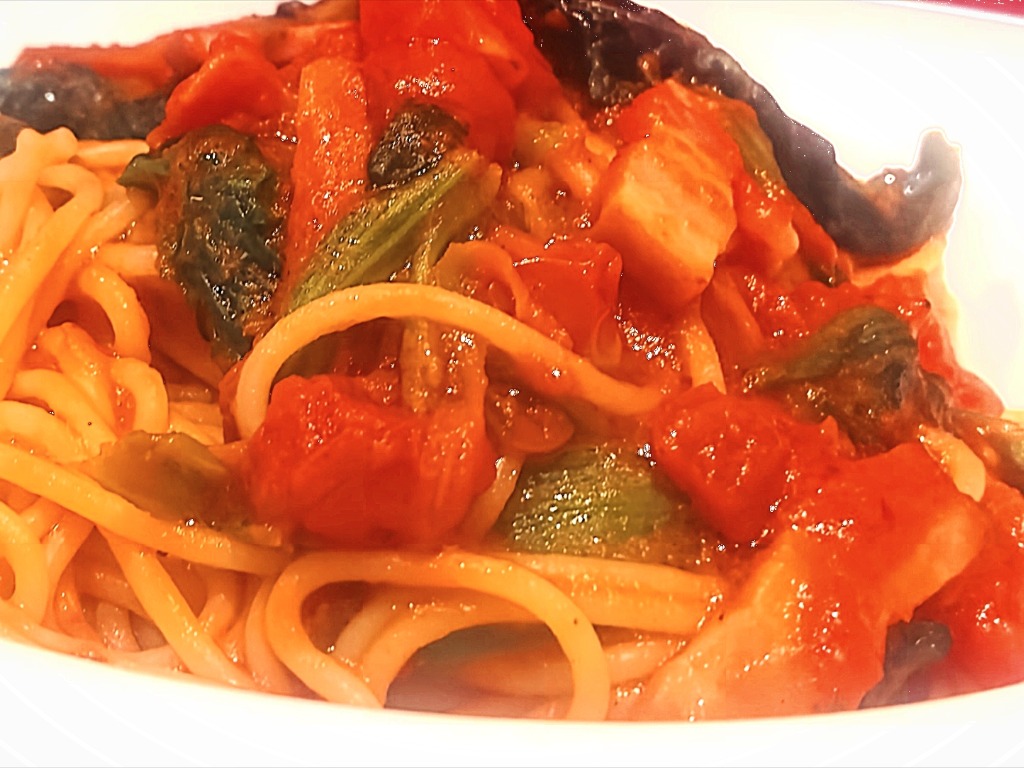 フルーティーななすがたっぷり入った、大地の恵みを感じるトマトパスタ♥