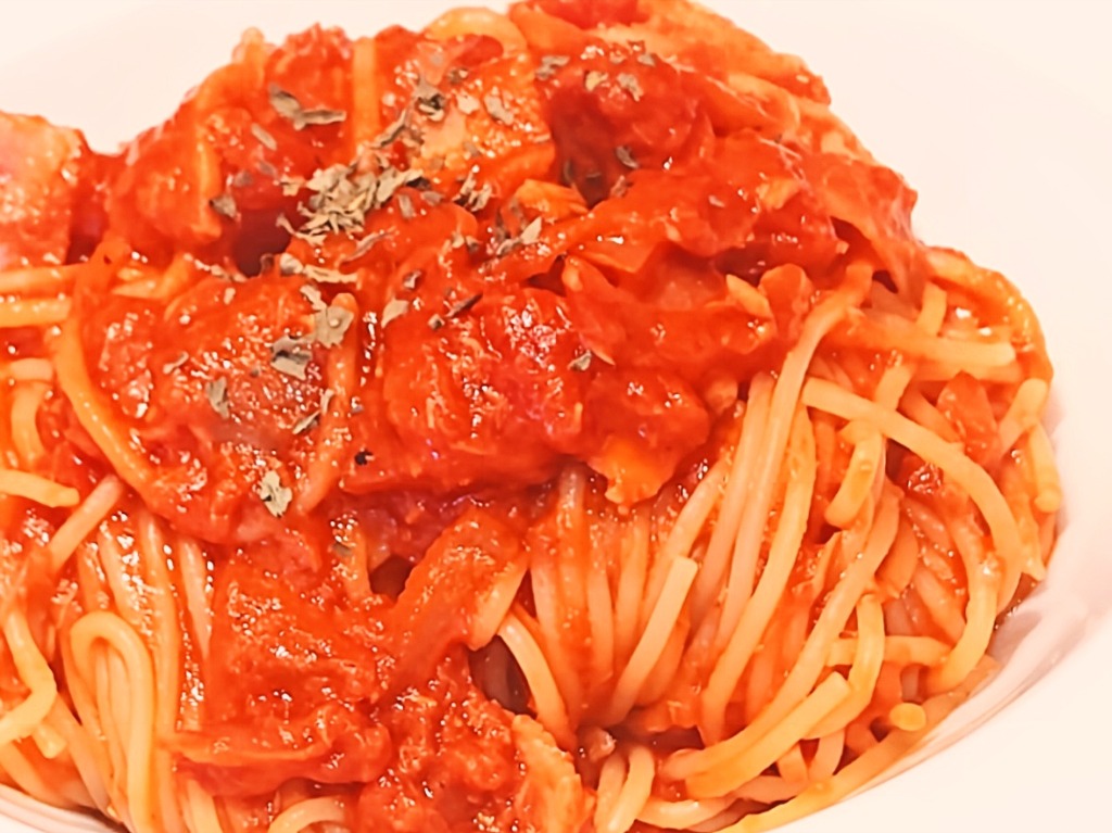 ほんのり広がるガーリックの香りが食欲をそそる、ちょっぴり刺激的なオトナのトマトソースパスタ♥