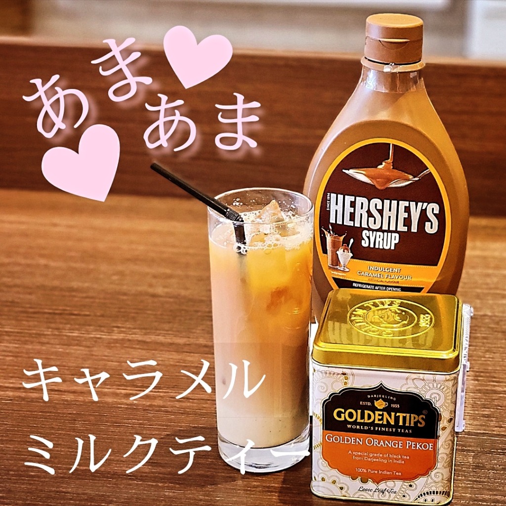 キャラメルソースをたっぷりしのばせ、甘みと香ばしさをプラスしたミルクティー♥