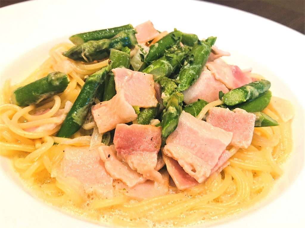 シャキシャキっとした歯ごたえよきアスパラガスがたっぷり入ったクリームソースパスタ♥