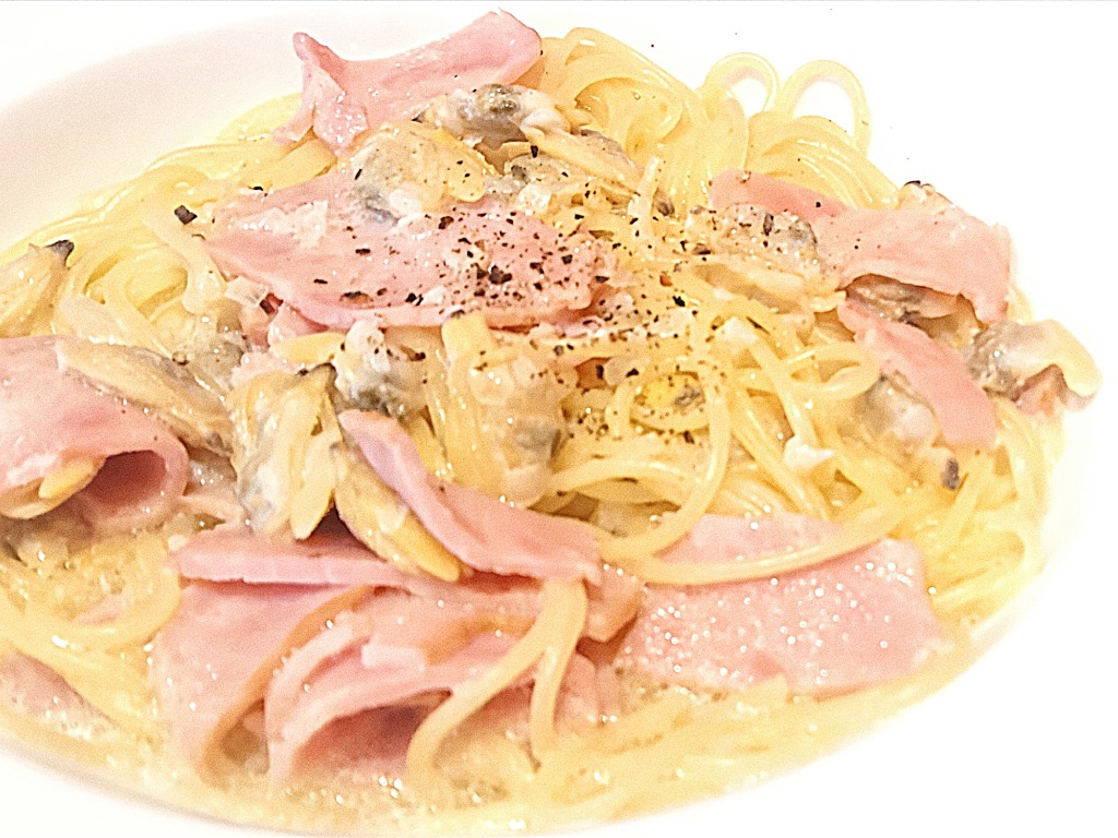 プリプリのあさりがたっぷり入った、クラムチャウダー風クリームソースパスタ♥