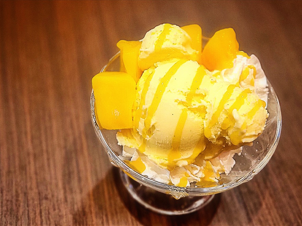 フローズンマンゴーと白玉をしのばせたサッパリ風味の贅沢パフェ♥