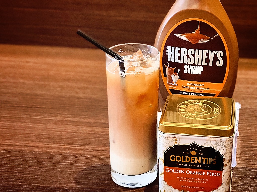 ミルクティーにキャラメルシロップをそっとしのばせました♥