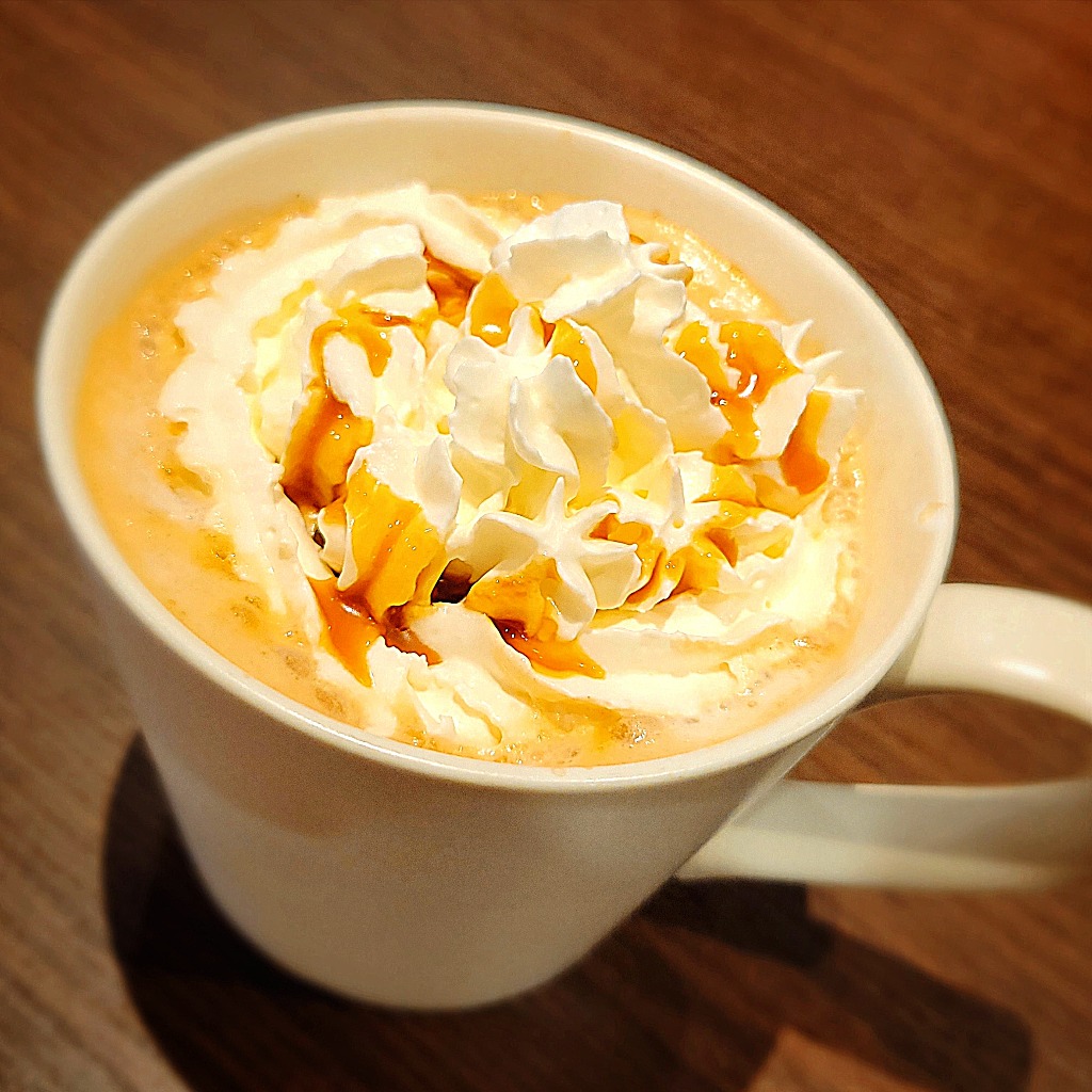 キャラメルラテにほわほわホイップクリームをたっぷりトッピング♥