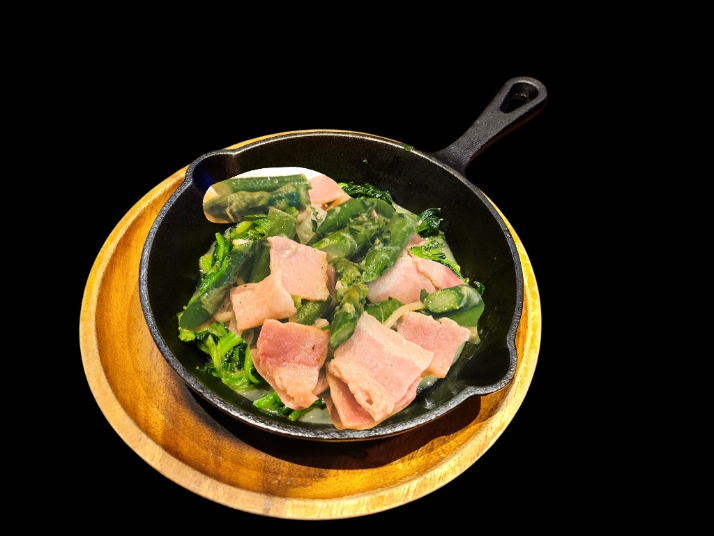 ジューシーなベーコンと可愛いねこ型の半熟目玉焼きをトッピング♥